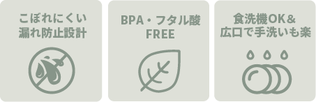 | 主な特徴 | 保冷ボトルへ拡張可 | 哺乳瓶パーツ活用 | 漏れにくさ重視・ストラップ穴あり | デザイン・大容量 |