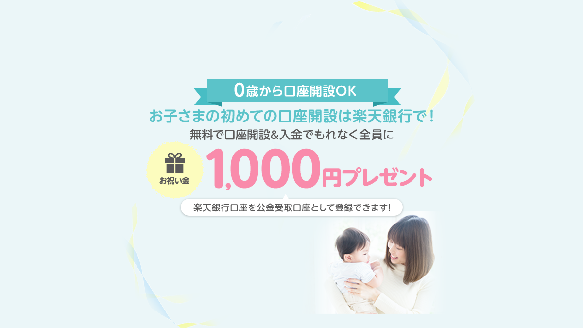 また、子供の口座をつくるとお祝い金1000円がもらえるキャンペーンがあるのもポイントです!