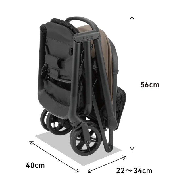 日本の老舗ベビー用品ブランド「Combi(コンビ)」のB型ベビーカー。折りたたみが自動化された「オートクローズ&オートスタンド」が特徴で、片手操作のしやすさと安定感を兼ね備えています。